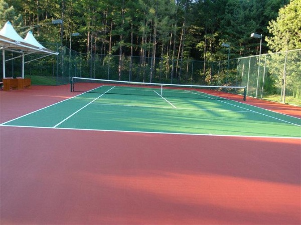 2,面層塑膠維修:塑膠局部區(qū)域出現(xiàn)了露底破損現(xiàn)象,底層塑膠與基礎起層脫落,針對此破損區(qū)域,先進行對整塊維修區(qū)域地進行打磨處理,用打磨機均勻處理老舊基層打磨掉面層浮粒脆膠露出新基層。然后對破損區(qū)域割除底層塑膠清理基礎,重新灘涂底膠。待所有破損區(qū)域修完畢后,利用試水查看場地坡度,待場地無明顯積水情況下。將對面層塑膠重新噴涂,采用我單位的塑膠噴涂機正,反,向分二次進行噴涂,噴撒落點70-90度為宜,形如雨點下落,一次噴撒料充足。用噴涂機進行膠料噴涂時,每一組膠料的銜接有準確,整齊,縮短每一組膠料的間隔時間,使成膠速度均勻一致。面層噴涂厚度控制為2-3MM。這樣進行的均勻性噴涂施工,特別是切縫處能完全覆蓋完好如初。